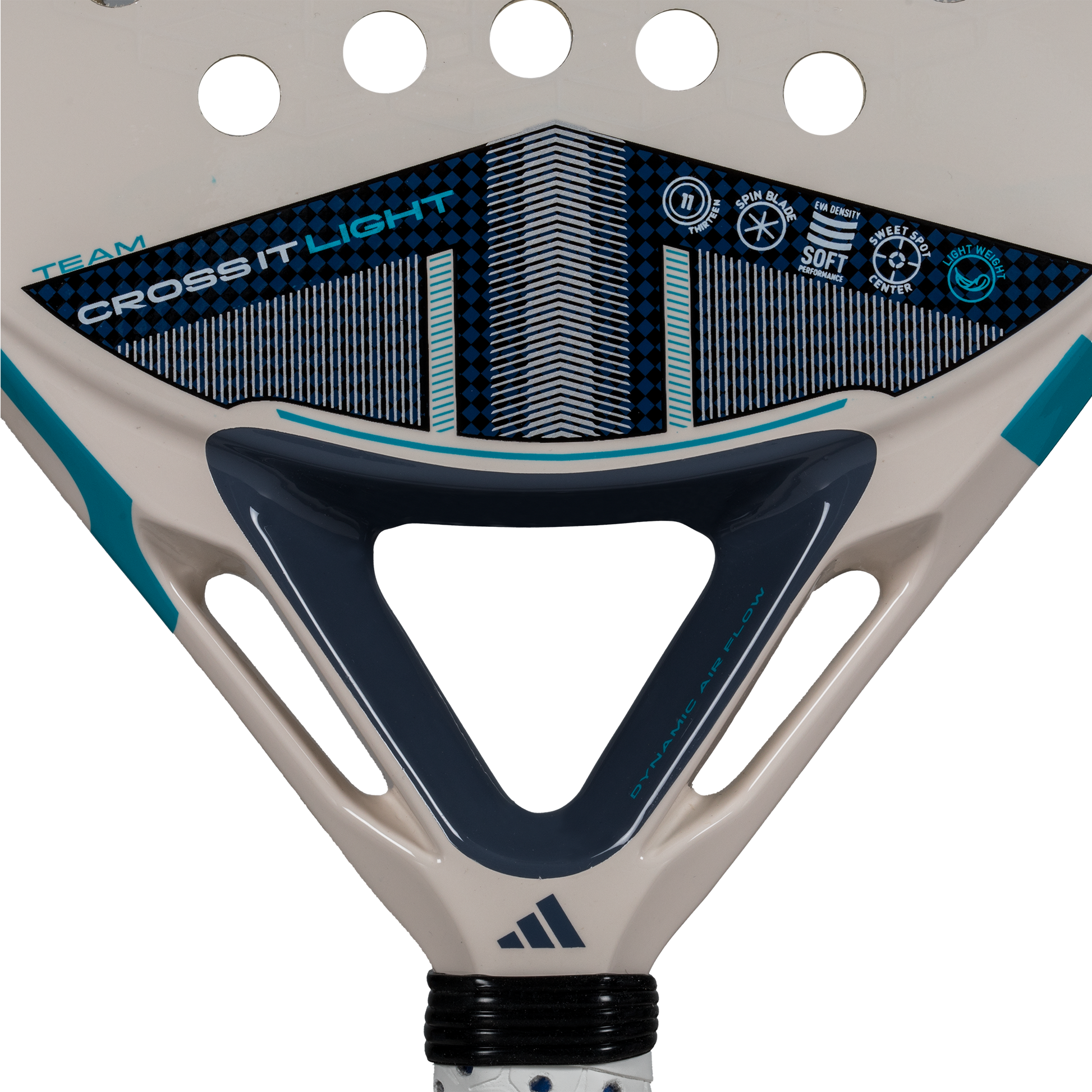 Dank der Dynamic Air Flow Technologie reduziert das offene Lochmuster den Luftwiderstand, ermöglicht schnelle Manöver und sorgt für schnelle Reaktionszeiten in intensiven Spielsituationen. Die Spin Blade Decal Oberfläche erhöht die Präzision und den Spin, sodass jeder Schlag kontrolliert und kraftvoll ausgeführt werden kann. Gefertigt aus Fiberglas und EVA-Gummi mit niedriger Dichte, bietet der Cross It Team Light einen weichen Touch, hohen Komfort und optimale Kontrolle – perfekt für technische Bewegungen auf dem Platz.