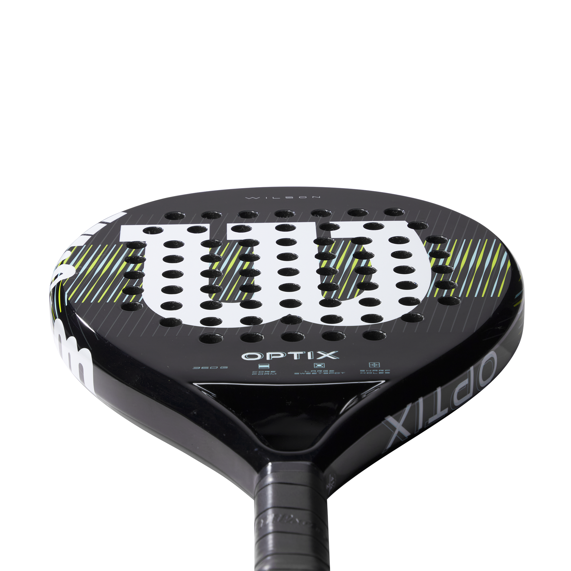 Die runde Kopfform hilft dir, konstant guten Ballkontakt herzustellen und die fortschrittliche Lochbohrtechnik sorgt für zusätzlichen Grip und Spin bei jedem Schlag.